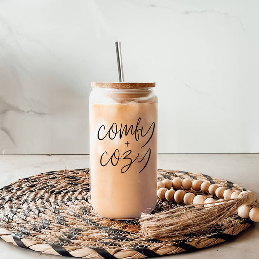 Comfy+Cozy Glass Mug with Bamboo Lid