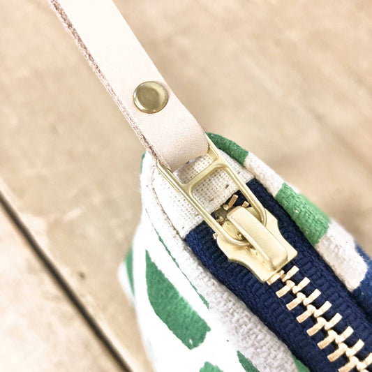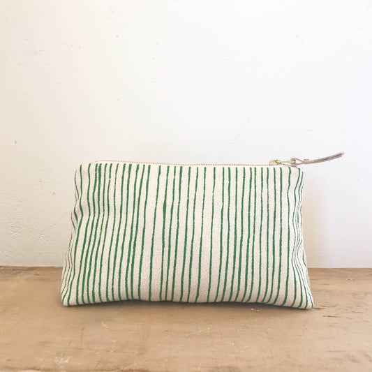 Green and Navy Block Striped Pouch