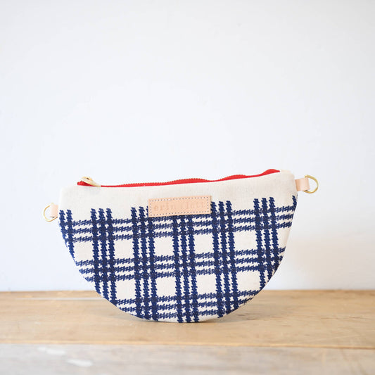 Navy Plaid Half Moon Clutch